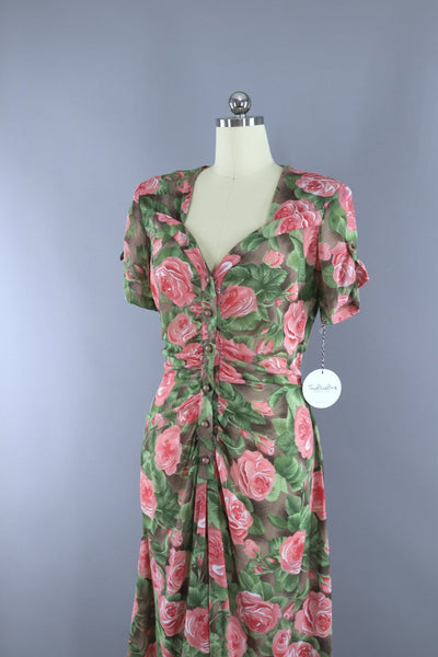 Vintage 1990s Rose Floral Print Dress / Madison Wells