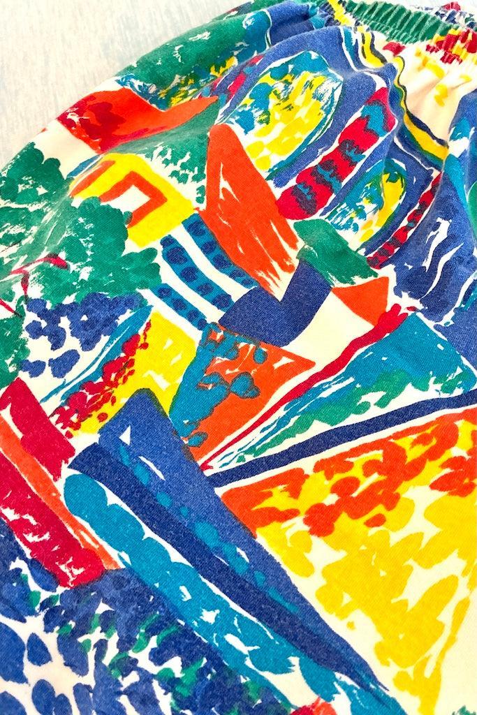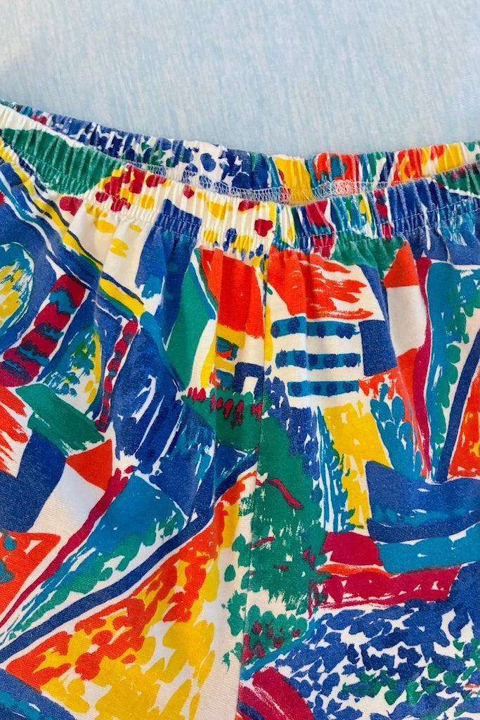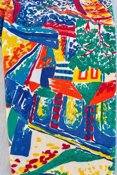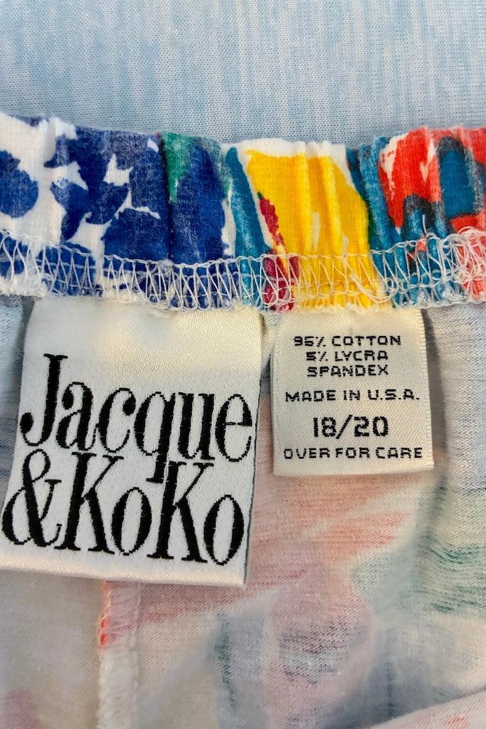 Vintage 80s knit legging pants by Jaque and Koko. Tapered fit, cropped length, elastic waist. Fun abstract print. Excellent condition.